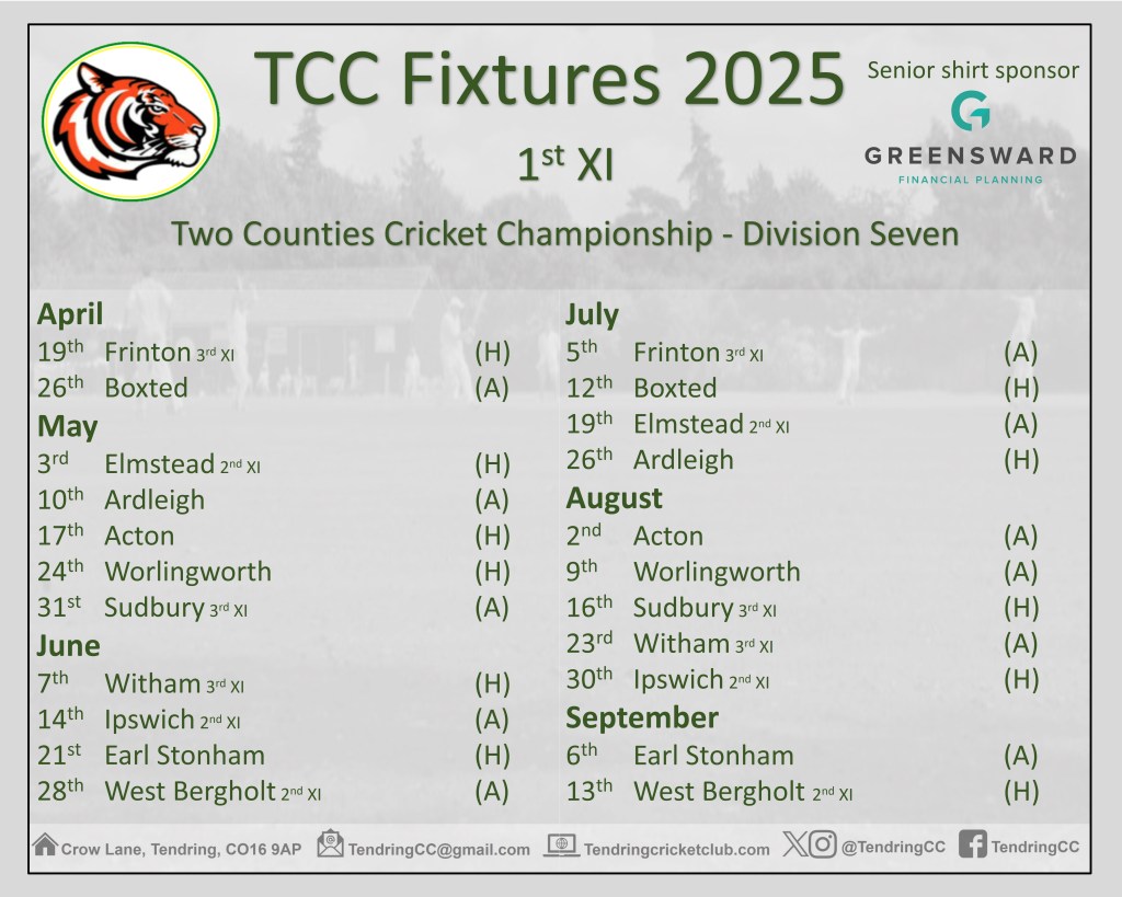 A full round-up of our results, scorecards and upcoming fixtures can be found via Play-Cricket – https://tendring.play-cricket.com/Matches